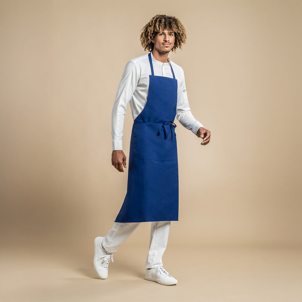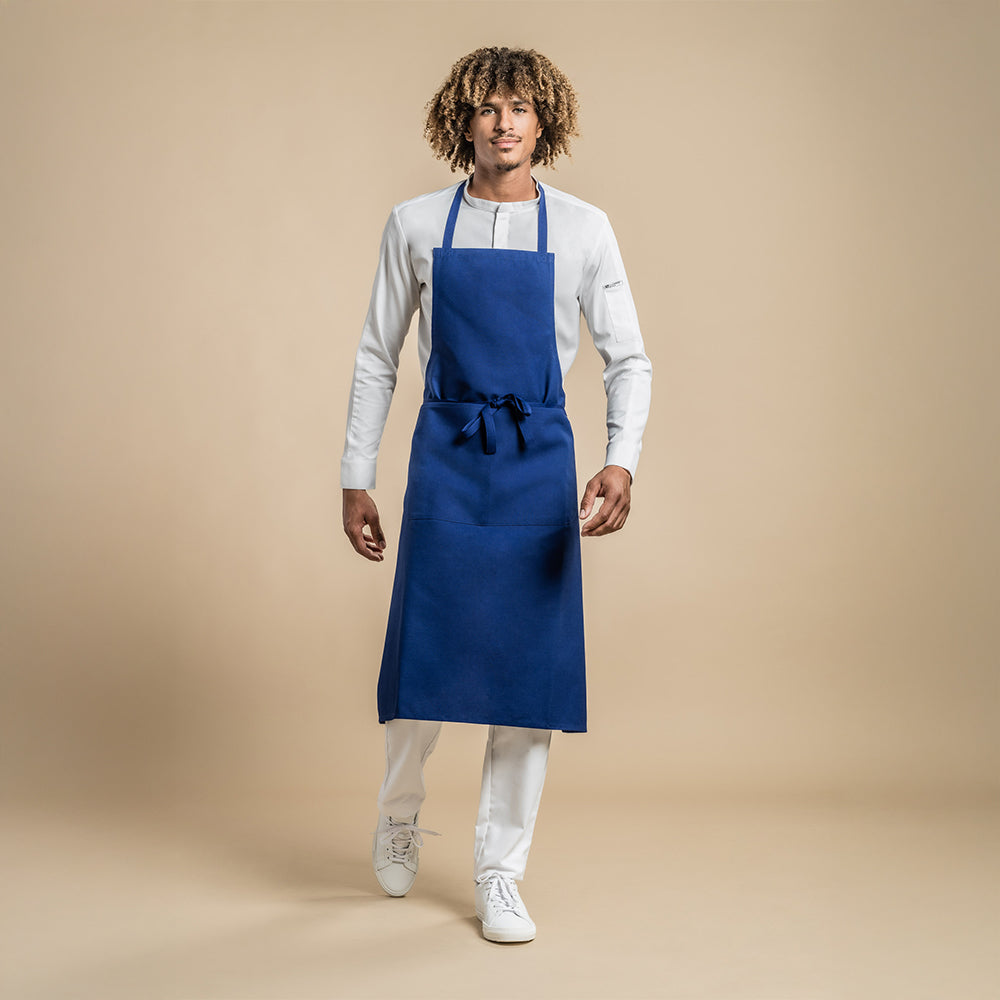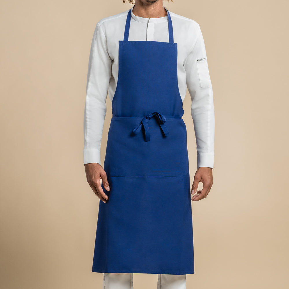 Royal Blue 50% Cotton/50% Polyester French Chef Bib Apron. One size: 100cm (39in) long - 100cm (39in) wide.