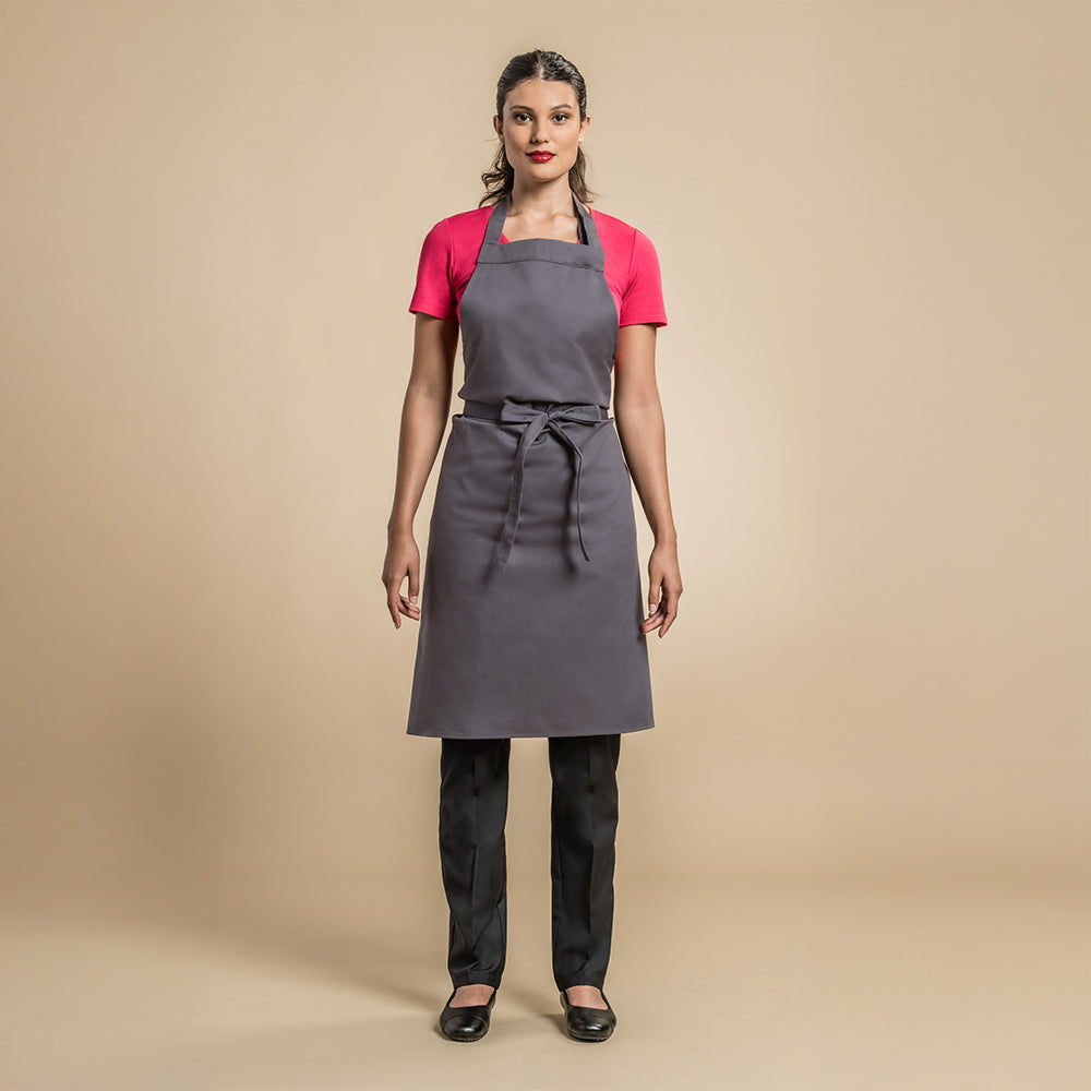 Anthracite executive chef's bib apron with adjustable collar strap. Pen pocket on the left side.