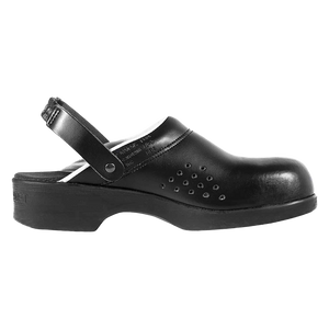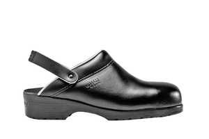 Motegi is a steel-toed safety clog that offers comfort and robust safety, making it a classic of our shoes collection. Flexible leather upper. Non-slip PU sole, heat resistant up to 140°, shock absorber heel. EN 20345 standard, SB+A+E+SRC. Available from 35 to 48.
