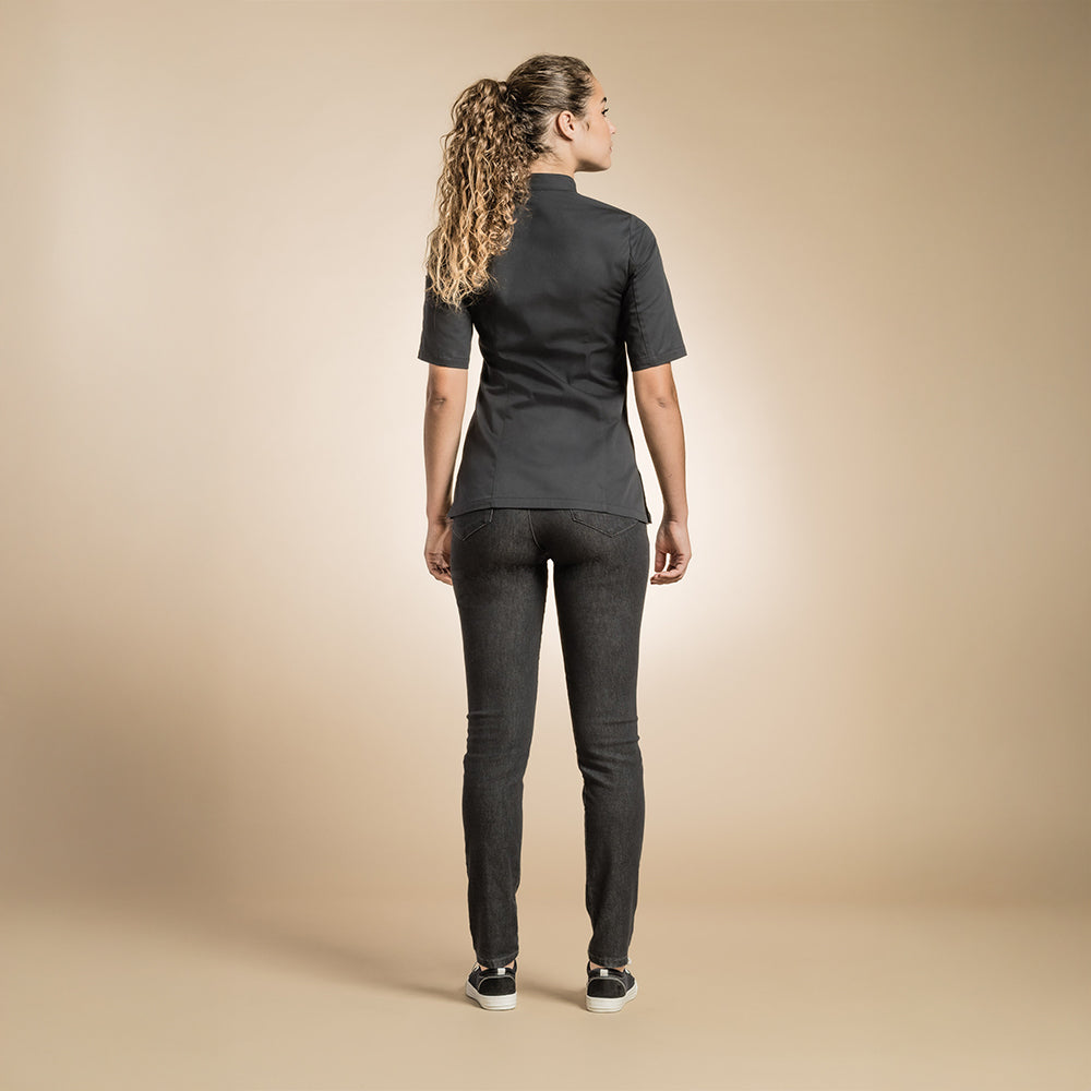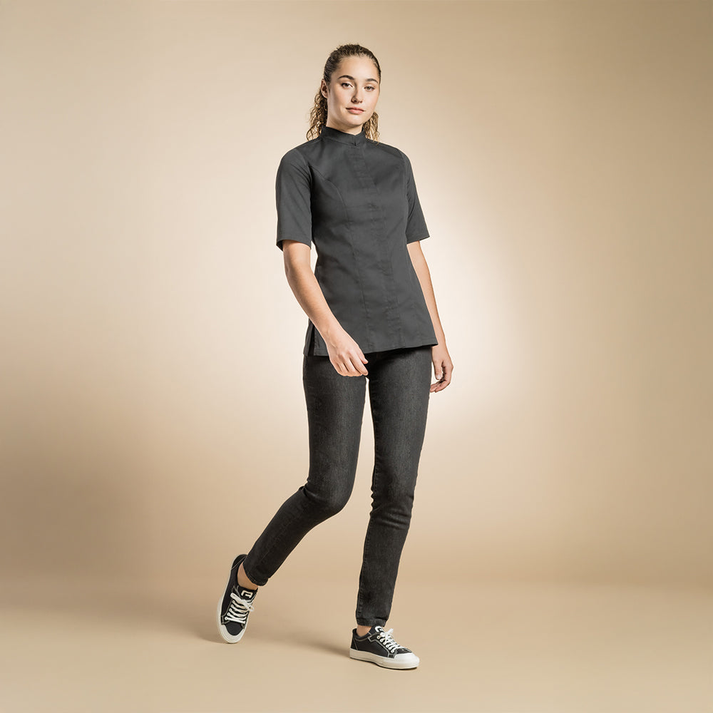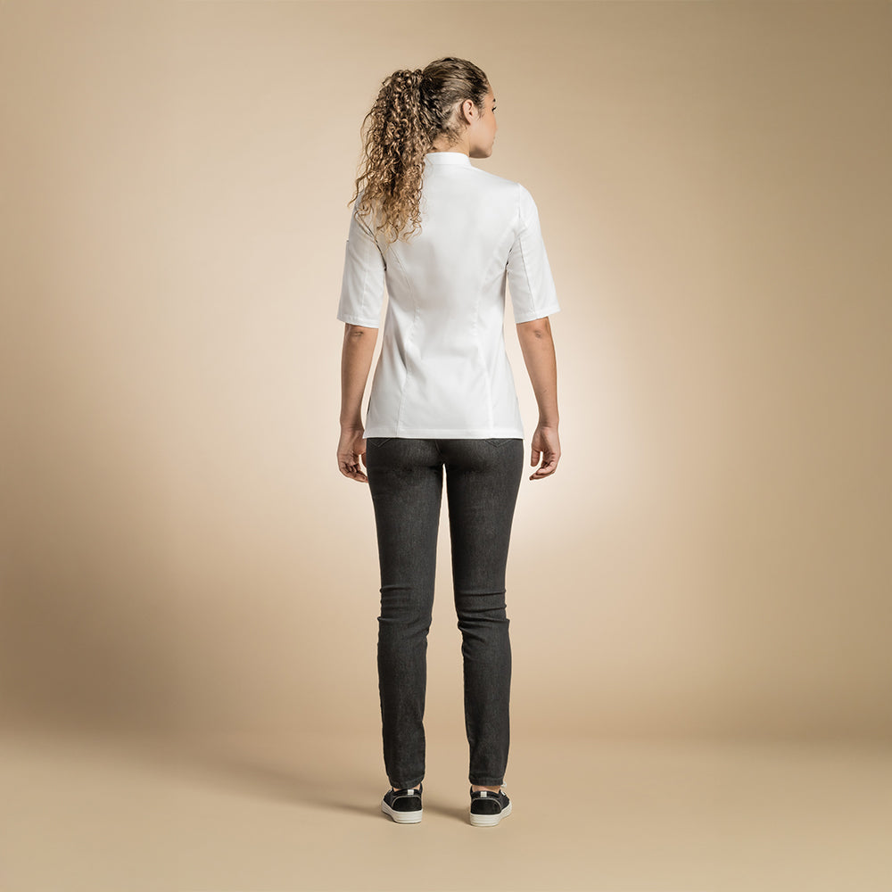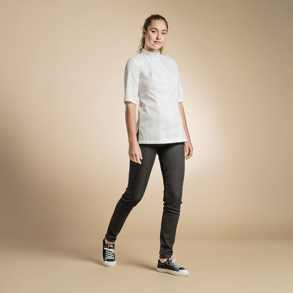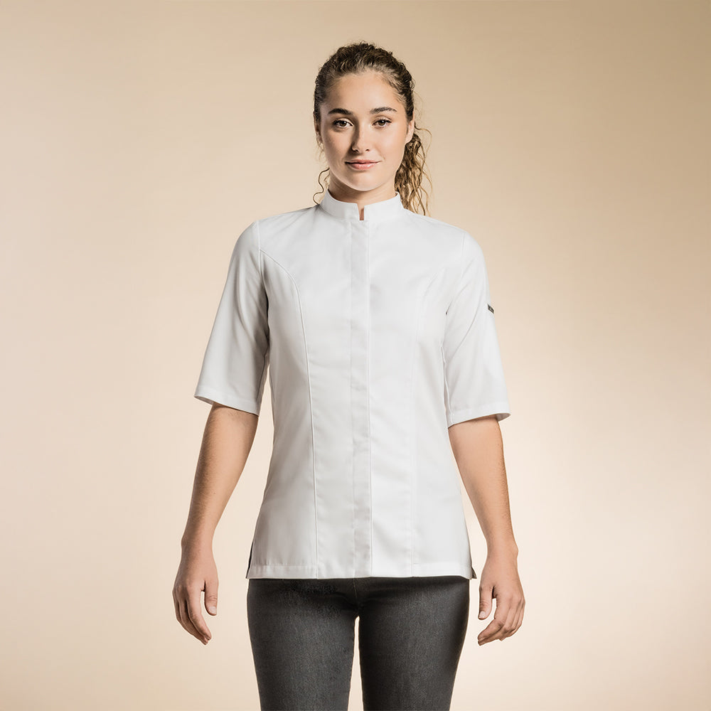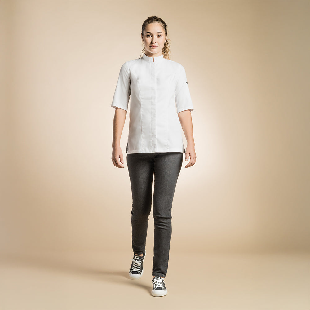 Genova - sleek women's officer collar chef jacket with ventilated slits