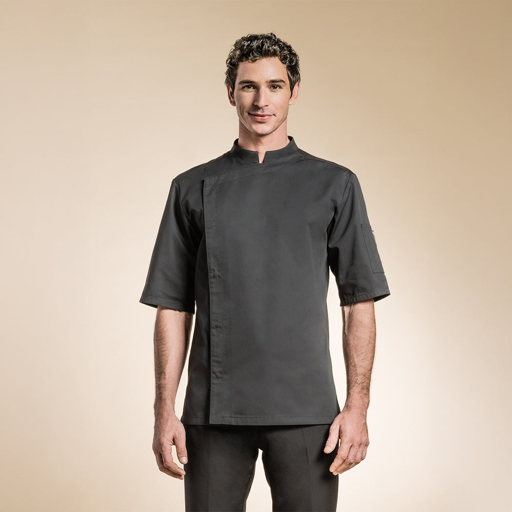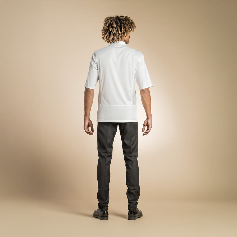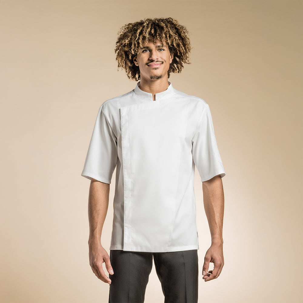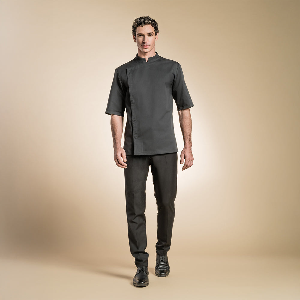 This sleek Men's Liverpool Chef Jacket is designed with style and functionality in mind. The square mandarin collar and hidden snap fastening add a professional touch, while the pen pocket and side slits allow for convenience and ease of movement in the kitchen. Customize your jacket with the C-YOU concept, featuring a 1 cm strip along the front yoke. Available in sizes T00 to T8 with short or long sleeves, this chef jacket is a must-have for any culinary professional.
