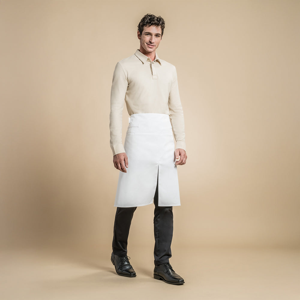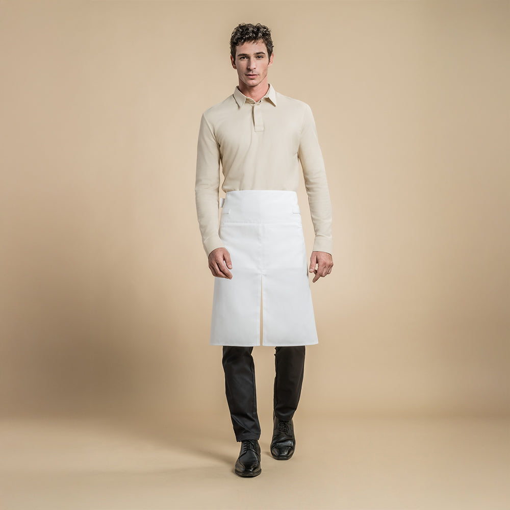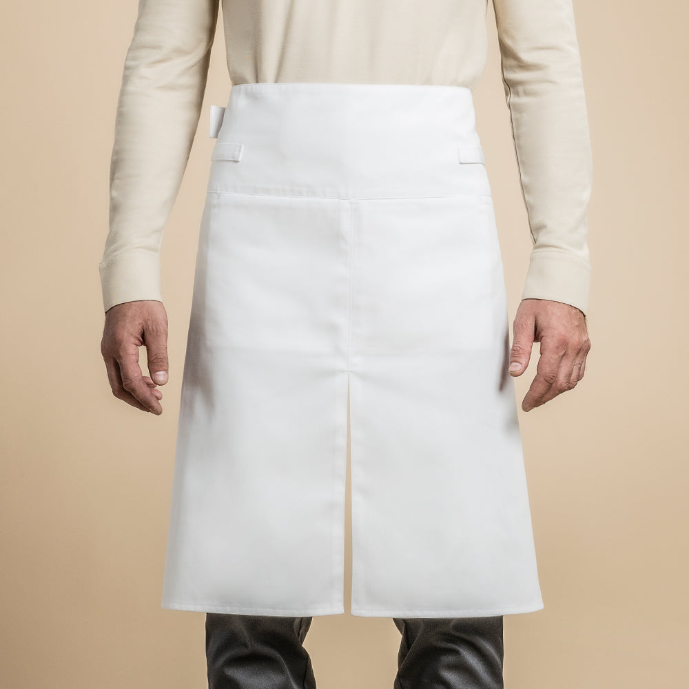 High-Quality French Chef Apron, front middle slit. With  SPEEDBELT fastening system. Kangaroo pocket below belt with towel loop.