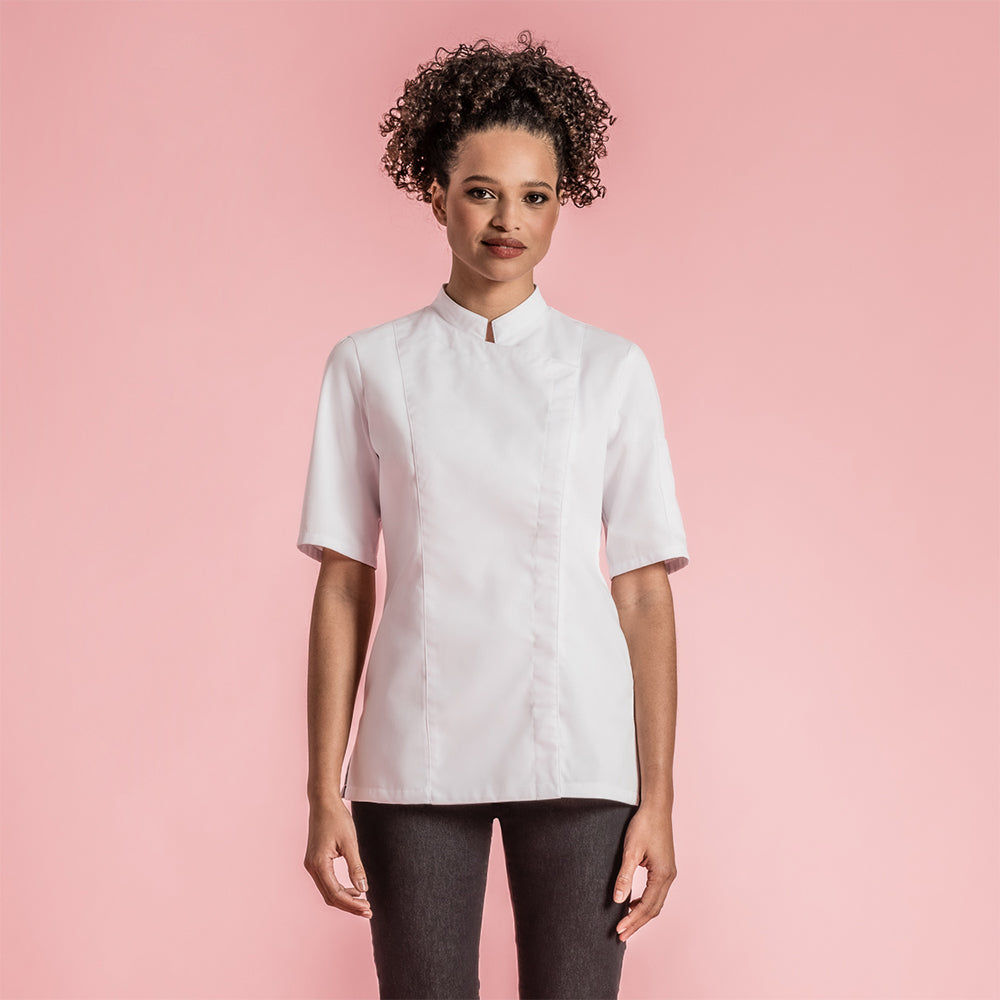 This sleek Women's Leeds Chef Jacket is designed with style and functionality in mind. The square mandarin collar and hidden snap fastening add a professional touch, while the pen pocket and side slits allow for convenience and ease of movement in the kitchen. Customize your jacket with the C-YOU concept, featuring a 1 cm strip along the front yoke. Available in sizes T00 to T6 with long sleeves, this chef jacket is a must-have for any culinary professional.
