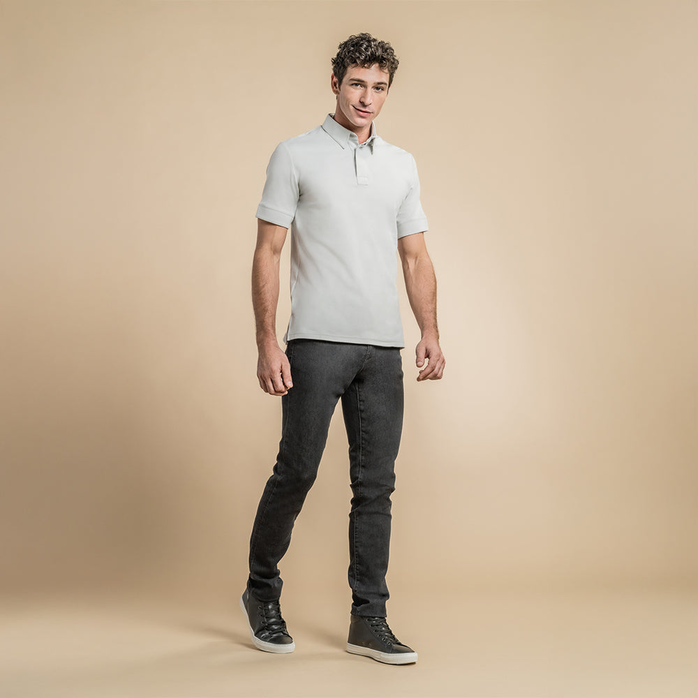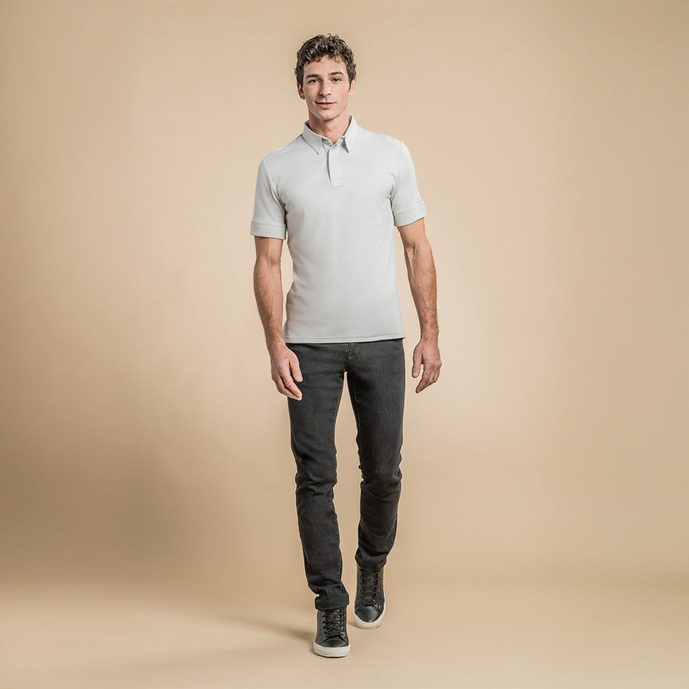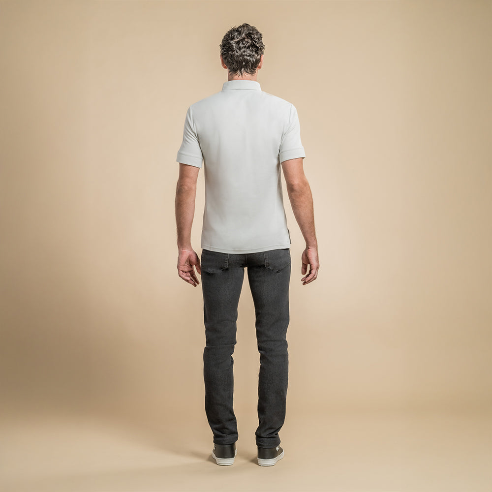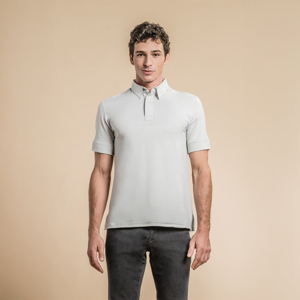 Two hidden buttons front placket. Side slits. Breathable mesh,